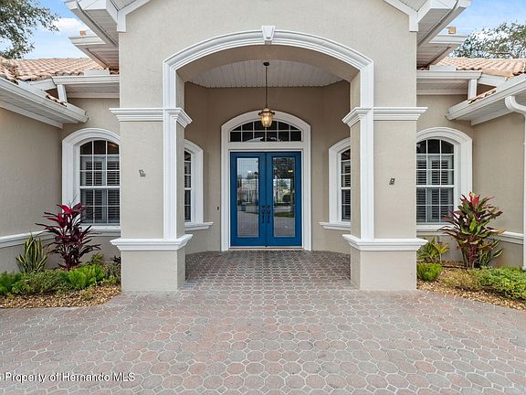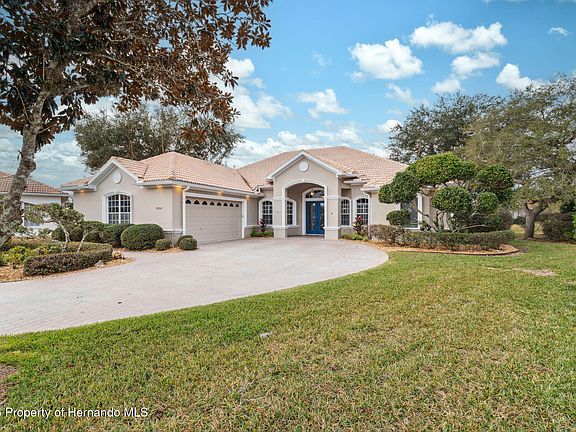 Discover the perfect blend of luxury, comfort, and convenience in this stunning 3-bedroom, 3-bathroom home with a den/office in the highly sought-after Glen Lakes gated community! Recently updated with a new air conditioner (2022), this home boasts timeless features and modern upgrades, ensuring it's ready for you to move right in. As you arrive, the covered front entry welcomes you into an inviting foyer with a built-in display shelf. Inside, you'll find high ceilings, elegant crown molding, and a central living room with a cozy fireplace and built-in shelves—the perfect space to unwind or entertain. Adjacent is a versatile den/office, easily adaptable as a fourth bedroom. The formal dining room, located off the living area, features tray ceilings and crown molding, adding a touch of sophistication to your dining experiences. The kitchen is a chef's dream, showcasing real wood cabinets, quartz countertops, glass cabinet doors, a built-in oven, a gas cooktop, and a breakfast bar. This eat-in kitchen has a breakfast nook that overlooks the screened-in pool, creating a serene start to your day. The primary bedroom suite is a true retreat, offering a private sitting area, tray ceilings with crown molding, walk-in closets, and a spa-like ensuite with dual vanities, stone counters, a jetted garden tub, and a step-in shower. Practicality meets style in the inside laundry room, equipped with ample cabinets, a sink, and direct access to the side-entry two-car garage. Outdoors, the covered back porch with pavers leads to a screened-in pool featuring a tranquil waterfall cascading from an attached stone wall. Beyond the pool, you'll enjoy serene pond views, creating an outdoor oasis. Nestled in Glen Lakes, named Reader's Choice Best Golf Course Community by The Hernando Sun in 2023, this home offers access to world-class amenities, including a country club, an 18-hole Ron Garl-designed championship golf course, a pro shop, and a full-service restaurant. Your social membership includes basic cable, internet, and access to the community's exclusive facilities, with additional golf memberships available. Glen Lakes adjoins the breathtaking 85,000-acre Chassahowitzka National Wildlife Refuge and is less than five miles from Weeki Wachee Springs State Park, Rogers Park, and Pine Island. With easy access to US-19, you're perfectly positioned to explore nearby destinations like Homosassa, Tarpon Springs, and the white sand beaches of Clearwater. Experience the best of Florida living in this exquisite Glen Lakes home—schedule your private showing today!