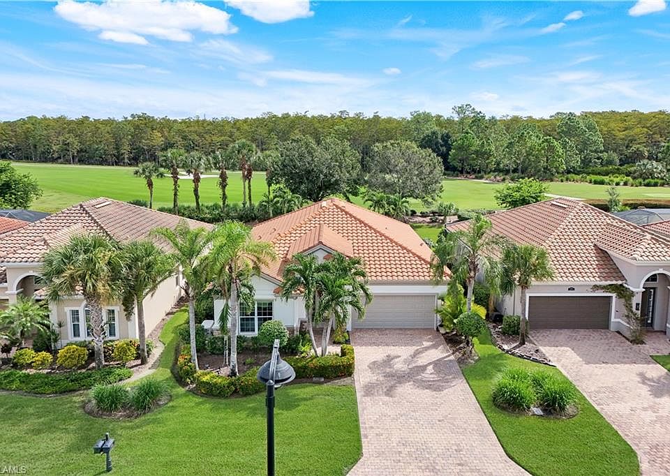 THE VIEWS from this gem in Naples’ Quarry is pure wow! Picture yourself in a stunning two-bed, two-bath with a den that’s basically a flex space for whatever you crave. Every inch screams luxury: freshly painted inside and out, sleek upgraded cabinets, newer appliances, gleaming floors, elegant crown molding, chic lighting, a killer sound system, an insulated garage for your toys and a Generac 20K watt automatic standby generator. The extended lanai equipped with electric storm screens so you can sip wine through any weather, gazing at jaw-dropping views of the seventh fairway and pristine preserve. Oh, and there’s room for YOUR dream pool! The Quarry's got everything for that ultimate Naples vibe with over five hundred acres of lakes for boating, jet-skiing, wakeboarding, or just chilling on a paddleboard. There's a resort-style beach club with a private sandy shore, perfect for picnics. There is tennis, pickleball, bocce ball, plus a tiki bar and indoor/outdoor restaurant with poolside service-grab a cocktail without moving. Fitness center, lap pool, walking paths through preserves, and an activities director keeps things buzzing with events. It's living in a gated resort, right in your backyard. Various optional memberships are offered at the privately owned Quarry Golf Club. Designed by world-renowned architectural team of Dr. Michael Hurdzan and Dana Fry in 2007, this Championship golf course wraps around the water with eighteen holes of pure scenic bliss. It’s not a home-it’s your VIP Naples escape!