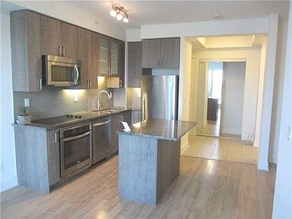 Gorgeous Bright & Spacious 1 Bdrm + Den In The Heart Of Richmond Hill. (Den Can Be Used As 2nd Bdrm) Fantastic Quiet Western View And Great Layout. Laminate Floors Throughout, Granite C/T In Kitchen And Centre Island, S/S Appliances. Huge, Gorgeous Balcony, Like Terrace! Indoor Pool W/ Terrace & Lounge, Sauna, Guest Suites, Gym & 24 Hours Concierge
