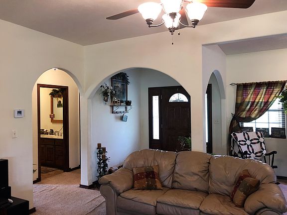 Located in rural subdivision south of town. Brick home sits back off road All electric home has split bedrooms. Bonus room upstairs with half bath and entrance ito attic with partial flooring. Perimeter walls of home are poured concrete with foam insulation on each side of wall. Master bedroom has jetted tub, walk in shower and 6.6 x 9 walk in closet.