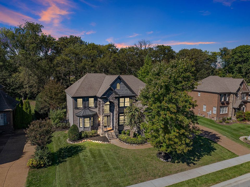 Stunning executive home showcasing sophisticated design and luxurious living spaces throughout. The dramatic two-story foyer with elegant staircase welcomes you to over 4,000 square feet of thoughtfully designed living space. The gourmet kitchen features spacious storage, elegant cabinetry, luxurious marble countertops, nearly brand new stainless steel appliances including double ovens, and a center island, made complete with built-in gas range. This kitchen is perfect for entertaining. The open concept main level offers formal dining, a study with French doors and custom built-ins, and a grand family room anchored by a double-sided, see-through, stone fireplace shared with the beautiful sun room. The luxurious main-level master suite provides a private retreat with spa-inspired ensuite featuring dual vanities, soaking tub and separate shower. Upstairs, three additional bedrooms each with private baths, plus a spacious bonus room complete the upper level. Architectural details abound including soaring ceilings, crown molding, gorgeously re-finished hardwood floors, and large windows flooding the home with natural light. The outdoor living space features an expansive patio and professional landscaping around the entire house. Located in the most prime Franklin location, this exceptional residence delivers the perfect blend of luxury, comfort and sophistication.