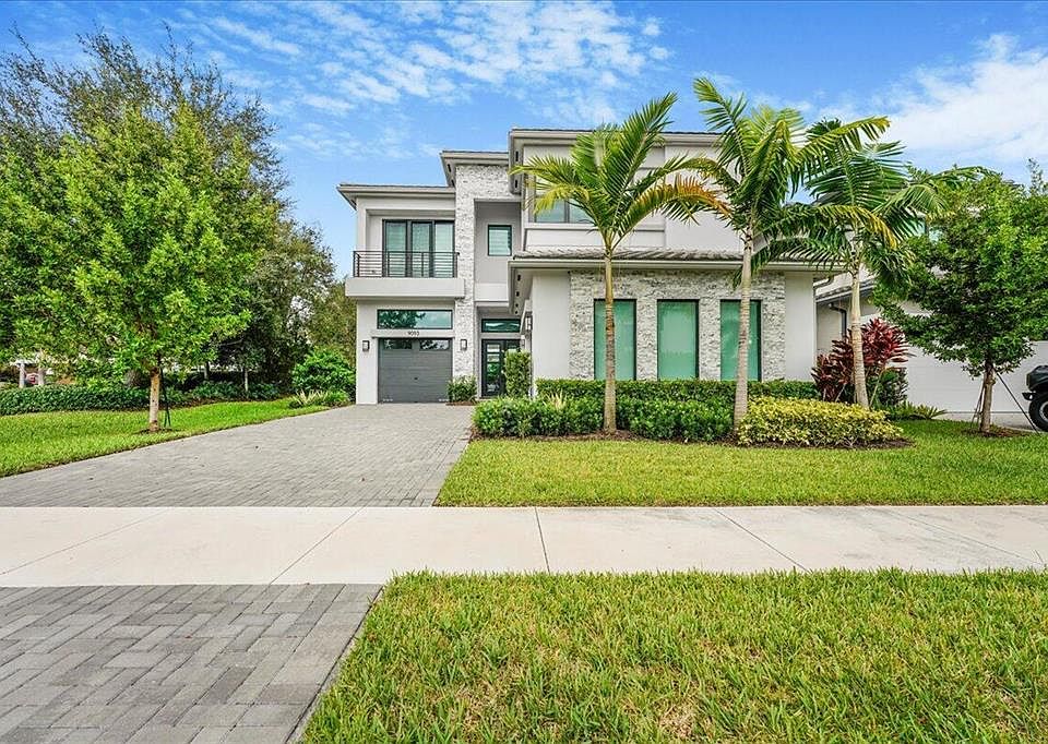 Modern 4-bedroom, 5-bath home with loft and media room that can be converted into a 5th bedroom. The open-concept design features a spacious great room, family dining area, and chef's kitchen with ample cabinetry and a large island. A mudroom with cabinetry off the 3-car garage provides extra storage.Each bedroom includes an en-suite bath, while the primary suite offers dual bathrooms and French doors opening to a covered veranda with pool and lake views. Upstairs, the loft connects to the veranda, and the media room provides flexible space for family gatherings or an additional bedroom. Sliding glass doors lead from the family room to a covered patio, overlooking the inviting pool and lake.