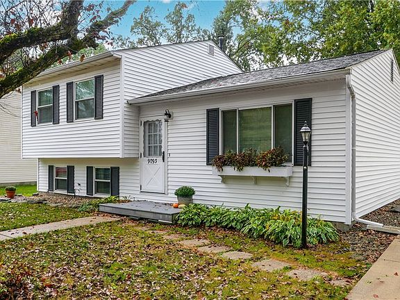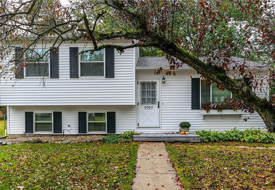 Welcome to 9093 Wilverne Drive! This inviting 3-bedroom, 1-bath home is full of charm! The heart of the home features a welcoming dining room with built-ins and a decorative accent window, adding character to everyday meals. The updated bathroom feels fresh and modern, while the all-season room off the back of the house is an ideal spot for morning coffee, hobbies, or simply relaxing year-round. The lower level offers a cozy den with an electric fireplace that could easily double as a spacious primary bedroom, plus a convenient laundry room with folding space and cabinets to help keep life organized. The walk-out basement adds even more flexibility and easy access to the outdoors. Enjoy the fenced-in backyard with its composite deck and gazebo canopy—great for entertaining, gardening, or quiet evenings outside. The detached two-car garage with additional room provides plenty of room for storage, hobbies, or projects. This home blends comfort, updates, and unique touches—ready to welcome its new owners!
