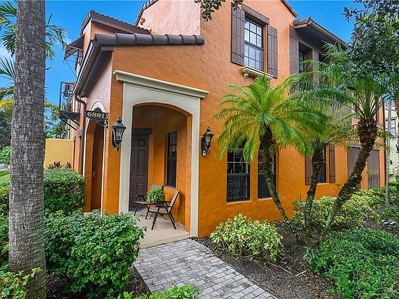 Lovely Santa Rosa townhouse features three bedrooms and a den. Corner unit allows for windows on each side of the home for a lighter and brighter interior. First floor offers a generous great room, kitchen with granite counters, dining room, convenient powder room and walk-in pantry. The upstairs provides three bedrooms, two full baths, generous family gathering area and balcony. Second floor also includes a loft stye area for office with built in desk. Private entrance to the two car garage. Hurricane level windows and doors for storm protection. The Village Center is conveniently located one block away from this corner lot home. The Village Center is ideal for relaxation or socializing with friends and neighbors. Center provides resort style pool, kiddie pool, spa, volleyball, bocce, fitness center, pickleball, basketball, tennis, movie theatre, and on site pub and ice cream parlor. A short drive to stunning beaches, amazing restaurants, unique shopping and many cultural activities. Multiple golf courses nearby. Ole' at Lely Resort offers the ultimate Florida Lifestyle!