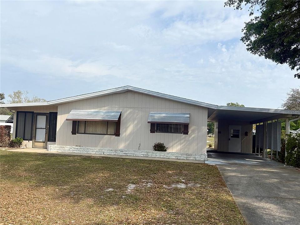 THE SEARCH IS OVER. Beautiful light filled, 3 bedroom, 2 Bathroom home features newer laminate wood floors and ceiling fans throughout. A large carpeted/glass-enclosed sun room PLUS separate laundry room and detached workshop. NEW ROOF in 2023. A/C replaced in 2015. The primary bedroom has an en-suite bathroom with walk-in shower. The home has ample storage both inside and outside including a walk-in closet in the guest room. Low monthly fee includes community pool, clubhouse, meeting room, tennis courts, pool with spa, billiards room, walking/biking trails, and more. Conveniently located to shopping, dining, entertainment, and medical facilities. DON'T MISS THIS ONE!