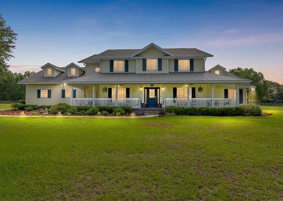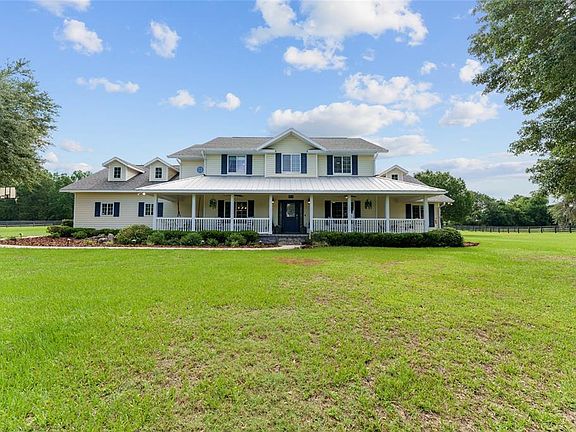 Hold on to your saddles, because this one is truly special! Nestled in the heart of South Ocala’s renowned horse country, this move-in ready equestrian estate in the exclusive community of Bridle Run offers a rare blend of luxury, functionality, and serene rural living. Situated on 4.36 acres with access to private, non-motorized community bridle trails, this property is ideal for equestrian enthusiasts, nature lovers, or anyone seeking refined country living. An automated gated entrance welcomes you to this beautifully maintained 5-bedroom, 3-bathroom POOL home featuring an upstairs theatre room with a mini kitchen and additional attic space—perfect for a media room, home office, or guest suite. Thoughtful upgrades include solar power with a grid-tie system (unused energy is sold back to the grid), electric vehicle/generator-ready garage, fiber optic internet, and a newer water heater and heat pump. The home includes two AC units—one replaced in 2021 and the other original but functioning well with recent service. The interiors feature built-in carpet in the living room and stairs, with propane lines already in place for the saltwater pool, and both indoor and outdoor gas fireplaces. The washer and dryer units (two-in-one models) will stay with the home, and the property is equipped with well and septic systems for added independence and efficiency. Outdoor living is a dream with a resort-style pool area complete with a kitchen and grill setup, a charming pergola, fire pit, generator ready, and a tranquil river waterfall. A detached garage includes a workshop and attic storage, perfect for hobbies or additional space. The grounds also feature a garden, sandbox, and plenty of open space for both your family and horses to enjoy. Bridle Run’s HOA maintains the main entrance and trail system, with a scenic horse trail running directly behind the home. A new school (Winding Oaks Elementary) was just built nearby, adding value and convenience to this already desirable location. Enjoy being less than 10 minutes from the Florida Horse Park and Marjorie Harris Carr Cross Florida Greenway Trails, approximately 15 minutes from Downtown Ocala, and only 25 minutes from the World Equestrian Center. Whether you’re living the equestrian lifestyle or simply looking for peaceful country luxury, this exceptional Bridle Run property is not to be missed.