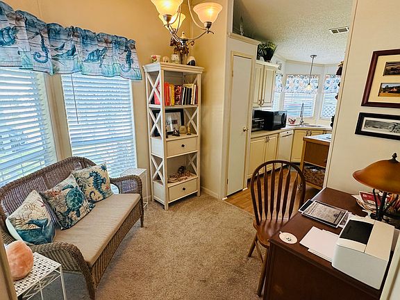 Located on lot 0039...This well maintained 1991 2BR/2BA Palm Harbor home comes partially furnished and move-in ready. No rear neighbors makes the screened in back patio a serene oasis. Located in the middle of the community makes easy access to all of the North and South amenities. Updates/upgrades include: 2015 new roof, 2022 new A/C motor, 2022 new guest bathroom vanity and toilet, 2024 NEW PLUMBING, Luxury Vinyl Flooring, 2024 new 30 gallon hot water heater, 2024 new vinyl flooring in vanity area and new blinds in the living area, 2025 Brand New Breaker Box. This home is sure to sell fast, so call today for you in-person showing.