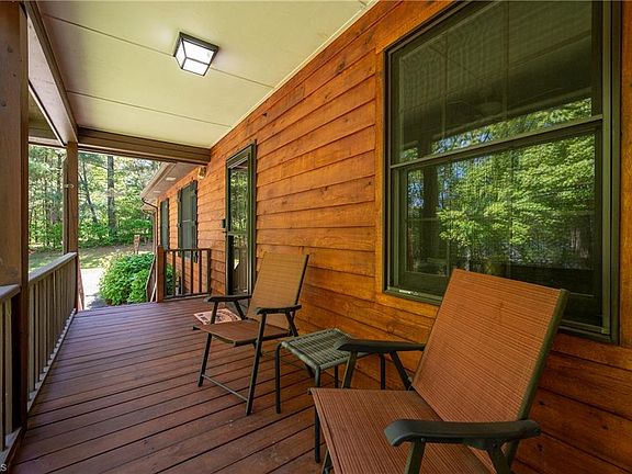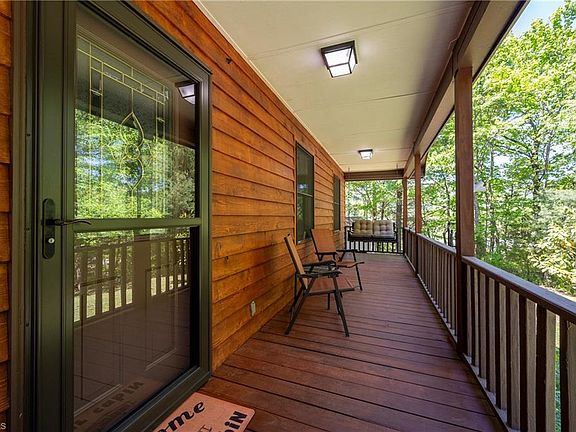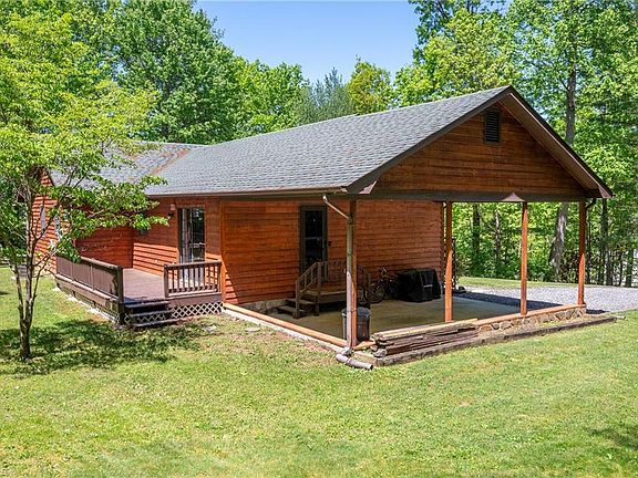 Beautiful and meticulously maintained home w/ 3beds/2bths offers the ease of one level living and an open concept floorplan. Kitchen and living room have been freshly updated w/ new appliances, including a gas stove for gourmet cooking, and a fabulous new fireplace w/ gas logs for after dinner relaxing. Fully renovated bathrooms! Great front porch for enjoying mtn views and a large sunny deck for outdoor grilling! Both the exterior and the interior of home have been recently stained and painted respectively. Home has a whole house filtration system, and a lovely 8'x10' outdoor storage building for your extras! Big screen TV in living room conveys, along w/ all appliances, including washer and dryer, and ring cameras! Call for your private showing today!
