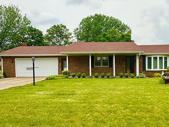 Welcome to this very well-maintained, full brick, 2 bedroom, 1.5 bath home located in Woodlawn Acres on a beautiful lot with mature trees. This one-owner home offers comfort, charm, and functionality. So much thought went into this layout. Inside, the large eat in kitchen includes all appliances, nice sized living room with picture window, large full bath is located in the hallway between the two bedrooms and the half bath is conveniently accessible from both a bedroom and the garage. House has a whole house fan in the hallway and a wall air conditioner in the living room both will cool the entire house! The oversized 784 sq ft garage includes a nice workshop area with workbench, lots of electrical outlets for equipment and wood stove that will heat the whole house if the power is out! Pull down attic access in garage for extra storage. Roof 5 years old and windows 3 years old. Total electric. Step outside to a private patio, ideal for relaxing or entertaining, plus a storage shed for your outdoor tools and extras. This is a rare opportunity to own a home that shows so much pride in such a desirable setting!