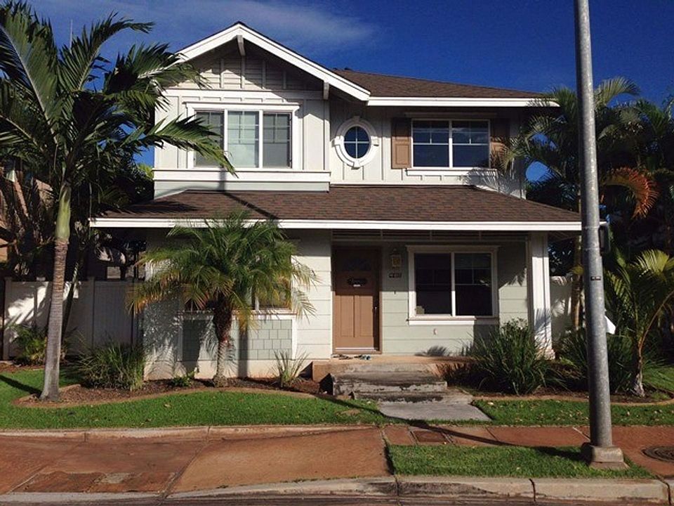 Enjoy living in Ocean Pointe which is not far from the new Ka Makana Ali'i Mall. Newer home built in 2004 has wood laminate floors downstairs, newer carpet upstairs, slate tile in kitchen & baths, central AC, SOLAR PV SYSTEM TO MINIMIZE ELECTRICITY BILLS, vaulted ceilings in the formal living rm, family rm w/TV nook, open concept kitchen w/island & stainless steel appliances, built in desk, dining area, upstairs loft, bed & full bath downstairs, private yard w/concrete slab and lanai for parties/get-togethers, 2 car garage, sprinkler system, and more! $20 app fee & minimum credit score of 650 required for each adult applicant. Combined household income must be at least 3 times the rent amount. Rental Insurance is required. Utilities not included. Yard service included with rent. No smoking. Available 1st week of October!