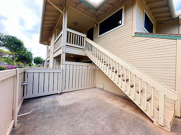 Enjoy living in this upstairs 1 bedroom, 1 bathroom, 2 parking townhouse at Pae Ko Gardens in Kapolei. This unit is located near Villages of Kapolei Association, playground/park, schools, shopping centers, and bus lines. PROPERTY DETAILS: - Unit Type: Townhouse - Approx. Square Footage: 505 - Year Built: 1995 - Bedrooms: 1 - Bathrooms: 1 - Parking Stalls: 2 Uncovered UNIT FEATURES: - Full Size Stacked Washer & Dryer - Refrigerator - Electric Stove/Oven - Microwave Range hood - Disposal - Window AC in Bedroom - 2 Ceiling Fans in Living Room & Bedroom - Dining in Living Room - Open Patio - Storage Closet - Window Coverings: Horizontal Blinds - Flooring: Laminate & Ceramic AMENITIES: - Villages of Kapolei Association (Pool, Recreation Center & Playground) Upon Request - Site Manager UTILITIES: - Included: Water & Sewer - Tenant responsibility: Electricity, cable, phone, internet, pest and gas (if applicable) LEASE TERMS: - No smoking - Sorry, no pets! - Available Now - Lease Length: 6 months - 1 year - Professional cleaning required upon move out by an approved vendor of Cornerstone Properties. - Renter's insurance required: with $300,000 liability coverage and Cornerstone Properties listed as additional interest. - All adults 18 years old and older must apply. - Application fee: $35 (non-refundable) PROPERTY CODE: 925VAN Cornerstone Properties, LLC: RB-20789 *DISCLAIMER: This property is currently tenant occupied therefore in-person showings are unavailable at this time. If you submit a rental application, you do so with the understanding that the application fee is non-refundable, and it will be processed as a Sight Unseen application. Cornerstone Properties is not responsible for any inaccuracies or misprints on this website or other subsequent websites and reserves the right to make changes without notice. Our rental units are considered available until an applicant is approved, the security deposit is paid, and the lease is executed. Please be advised that although a property is listed as available, it could be in the process of a lease signing or may have just been rented. Please call our office to inquire. All availability dates are approximate and not guaranteed.