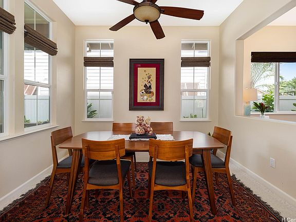 Rarely Available, Highly sought after, Beautifully upgraded 40:10 single-level model in Ka Makana at Hoakalei. 3-bedroom, 2-bath home with den offers 1,612 sqft of living space and 11-foot ceilings for an open, airy feel. Recent improvements include new carpet throughout (2024), two new 40-gallon water heaters (2024), and a 2025 energy system with 17 solar panels (25-year warranty). Inside, enjoy new Samsung refrigerator, washer/dryer combo, Bosch dishwasher, and a remodeled laundry room (2025). Outdoor living is enhanced with tiled front entry and walkway, extended tiled lanai, and a quiet cul-de-sac location. Security features include an alarm system plus front and back security screen doors. Garage includes built-in storage. This turnkey home offers the best of the Hoakalei lifestyle with access to community amenities and nearby beaches, golf, shopping, and dining.