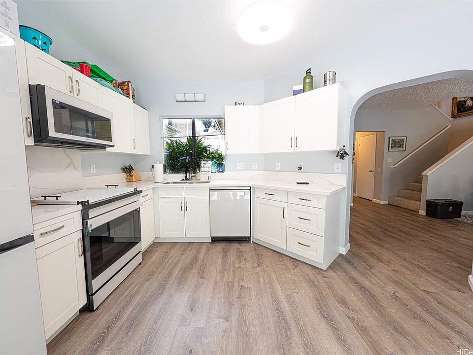 Welcome to Arbors, a highly sought-after gated community in Ewa Beach! This beautifully maintained 3-bedroom, 3-bath townhome offers a spacious 1,500+ sq. ft. layout that feels more like a single-family home. Enjoy the convenience of a ground-floor bedroom and full bath, perfect for guests or multi-generational living. The home features stainless steel appliances, a separate laundry room with a sink, and a private 2-car garage. Step outside to a spacious, gated backyard with no back neighbors—just serene golf course views. Ample guest and street parking make entertaining easy. Arbors residents enjoy a secured entrance, a community pool, and a barbecue area. Conveniently located near Wai Kai Lagoon, multiple golf courses, beaches, Ka Makana Ali‘i Mall, restaurants, and parks. Don’t miss this opportunity to own a home in one of Ewa Beach’s most desirable communities!