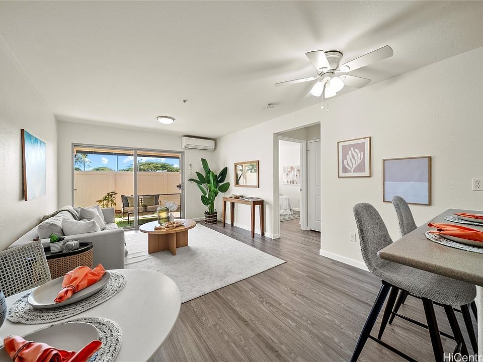 Motivated Sellers! Welcome to this spacious and rarely available ground-floor 2-bedroom, 2-bath townhome in the desirable Nohona II at Kapolei, part of the Villages of Kapolei. Recent updates include beautiful Luxury Vinyl Plank flooring and fresh paint throughout, giving the home a modern and inviting feel. This unit features a well-maintained private yard, perfect for BBQs and outdoor gatherings, as well as a 1-car garage with additional driveway parking and ample storage. Stay comfortable year-round with split AC systems. Enjoy added privacy with no back neighbors and minimal noise from nearby schools. As part of the Villages of Kapolei, you'll have access to incredible amenities, including 3 private parks with tot lots, walking and bicycle paths, open green spaces, recreation centers with air-conditioned party rooms, meeting rooms, and 2 swimming pools. Adjacent to the Recreation Center is Kapolei Community Park, featuring ball fields, volleyball and basketball courts, and a fitness section. Conveniently located near Ka Makana Ali'i Shopping Center, dining, and all the amenities Kapolei has to offer. Don’t miss this opportunity to live in the heart of Oahu's Second City!