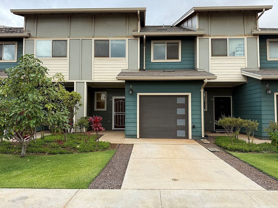 Discover this sharp, move-in-ready 3-bed, 2.5-bath split-level townhome in the highly sought-after 'Ilima at Ho'opili community on West Oahu. This is your chance to acquire a modern home at an unparalleled value. The interior boasts a contemporary, open-concept design. The kitchen features white shaker cabinets, sleek quartz/cool sands countertops, and a full suite of stainless-steel appliances (range/oven, refrigerator, dishwasher, microwave hood). Comfortable year-round climate control with split AC systems and ceiling fans. Durable vinyl plank flooring covers the main level, with carpeting upstairs. **Features: attached 239 sq ft garage, driveway, and a fenced yard. Primary suite includes covered lanai, en suite bath, and walk-in closet. Community amenities: pool, BBQ, playground, dog park, and jogging paths. Excellent location near rail, H-1, Ka Makana Ali'i, Kapolei shops and dining and UH West Oahu. **URGENT SHORT SALE NOTICE: All offers must be clean, with strong financing pre-approval, and are subject to final written approval of the third-party lienholder (lender). Anticipate extended closing timelines and a strict AS IS purchase condition. Make Ho'opili your new home!