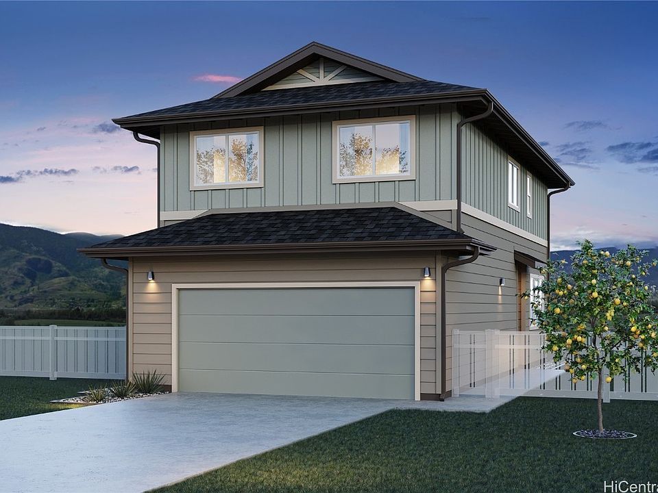 The 'Alohi, or ‘Bright’ plan. The open living room flows seamlessly through the kitchen and out to the covered lanai. The modern-style kitchen with white cabinets provides ample storage space, soft-close doors, and drawers, and features a Kohler single-basin vault sink, as well as a Whirlpool® stainless steel appliance package which includes your range/oven, micro-hood, and dishwasher. Downstairs, you'll also find a powder room, laundry room, bulk storage/safe room, and additional under stairs storage. Upstairs, discover the vaulted ceiling family room that includes a storage closet, and a drop zone tech area equipped with USB-C outlets. Next door, the primary bedroom includes a large walk-in and bonus closet and an ensuite bathroom with dual sinks and a step-in shower. Enjoy features such as split ACs in the living area and bedrooms, vinyl plank flooring in the living and kitchen areas, and plush carpeting in the bedrooms. The 2-car attached garage has a utility sink, an automatic garage door opener, and is PV and EV ready. A 10-year Limited Structural Warranty, Urban Garden with automatic irrigation, and a Home is Connected® smart home system, are included in this home as well.