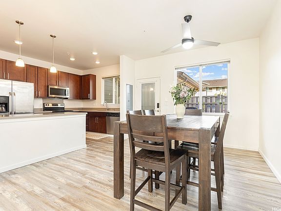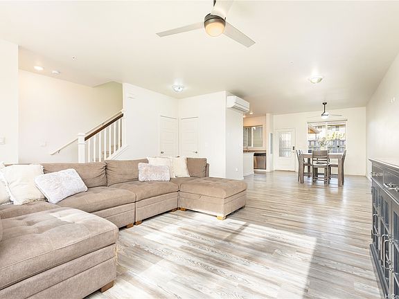 Discover spacious living in this split-level townhome featuring 3 bedrooms, 2.5 bathrooms with over 1,500 sq. ft. of interior space and a 1-car garage plus an additional assigned parking stall. Step inside to an open-concept living, dining, and kitchen area, with both a front and back yard for added flexibility. All three bedrooms are located upstairs including a primary suite with its own ensuite bathroom and walk-in closet. The laundry area is also upstairs for added convenience. Split AC units keep each bedroom and the living area cool year-round. This home is ideally situated near visitor parking and ample street parking. You’re just minutes from the SoHo Community Center offering a pool, park, and party rooms plus right across the street from Koane Park. Located in the vibrant and growing Hoopili community, you’ll also enjoy close proximity to freeway access, Ka Makana Ali‘i Mall, Costco, shopping, dining, and more.