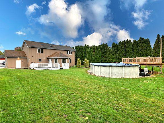 Nice-sized deckSpacious two-car garageSeparate glass-enclosed showerAbove-ground poolModern soaking tubFully finished basementLevel lot