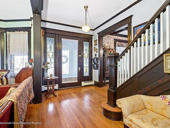 CAPTIVATING CRAFTSMAN! Stunning 4 bedroom 2 bathroom, restored home with the essence of yesterday, enhanced for today's living in up and coming Keyport! Thoughtful restoration and renovations throughout, with a large covered porch to greet guests that leads into the foyer with remarkable woodwork and original staircase. Continue into the large family room with wood burning fireplace and elegant formal dining room with coffered ceilings. Updated kitchen offers granite counters, custom cabinets, stainless steel appliances and a vaulted eating area. First floor also includes a sun room and office! Upstairs offers 4 bedrooms with two fully renovated bathrooms.