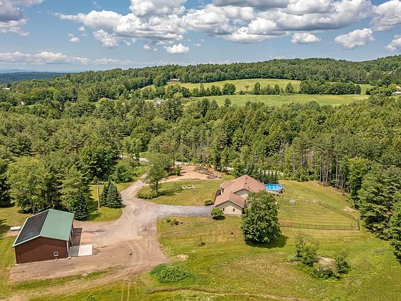 Situated on 5 private acres of open meadow surrounded by forest, this house is at the crossroads of rural living and easy access to amenities. At first blush the home appears modest, but don’t let the cover of the book fool you. The inside is remarkably spacious, with an expansive great room/dining room/kitchen area, an oversized primary suite with walk-in closet, and an enormous walk-out basement that opens to a sprawling, fenced yard, great for kids, pets, or small farm animals. The large deck off the dining area has a retractable Otter Creek awning, making it an ideal setup for entertaining. Throughout the house are quality finishes: crown molding, stainless appliances, granite countertops, tiled front entry and mud room, hardwood flooring, gas fireplace in great room, and it’s worth noting the house has 4 bathrooms. It’s also energy efficient, with heat pumps maintaining the home’s temperature and solar panels on the roof of the 2400-sq-ft detached workshop/garage that generate more electricity than you’ll ever need. There’s even an EV charger for electric vehicles, generator. The house has been lovingly maintained and is energy efficient and move-in ready!