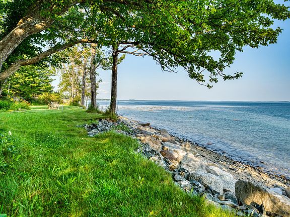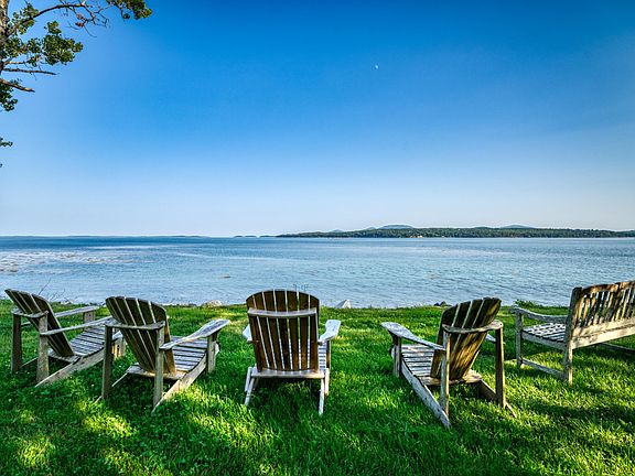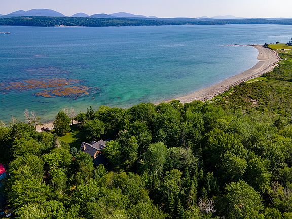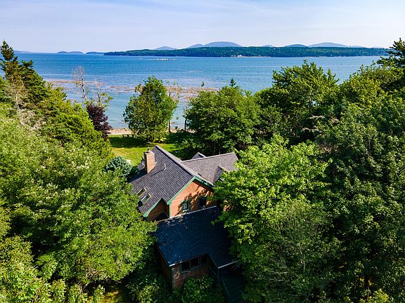 Special offering with freshly painted interior and panoramic views to the mountains of Acadia. 430' of shore frontage on over 5 acres, featuring a large 2-bay garage with loft space, and an additional small barn perfect for storing tools, kayaks and bicycles. Skylights abound in the custom built home, where an open concept connects the kitchen, dining area, and main living room with fireplace. An addition in 2006 off the dining area is an ideal office, home gym, or studio, or could double as a spare bedroom with its own full bathroom. Radiant in-floor heat throughout the first floor. The primary bedroom upstairs has floor-to-ceiling water views and a walk-in closet, while the upstairs bathroom features custom tile work, a standup shower, and bathtub. Nature lovers will delight in the pristine setting of this peaceful home in a great neighborhood.