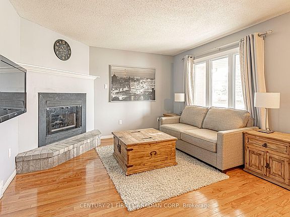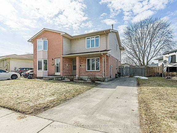 This could be the one you've been waiting for! Spacious 3 bedroom floorplan features Corner gas fireplace in livingroom with classic hardwood flooring that continues into dining area. Tastefully upgraded kitchen includes granite countertops, shaker style cabinetry with ceramic backsplash and matching LG appliances in grey stainless steel. Second floor is carpet free and includes oversize primary bedroom with dual closets, 2 spacious kids bedrooms and a full 4pc. family bathroom. Basement is nicely finished with laminates throughout plus additional 2pc Bath! Private fenced yard and parking for 3 cars. Numerous upgrades including new fiberglass roof, high eff. furnace, central air, owned hot water tank, deck, all completed in the last 5 years. Perfect location, close to public and high schools...and easy access to highways. QUICK POSSESSION AVAILABLE.