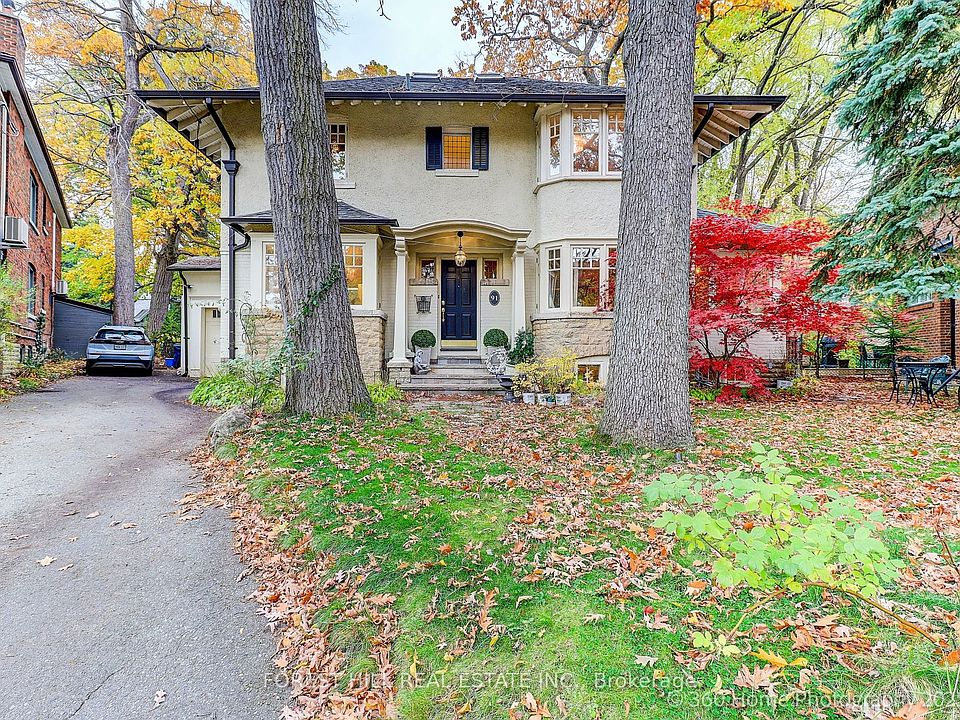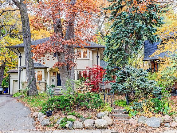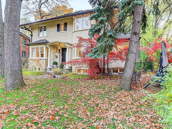 Incredible country like pool sized lot of over 10,000 sq ft, pie shaped as I widens in the back backing onto 4 separate properties on Wychwood Street/Park. Surrounded by mature trees, the slightly raised position adds to its commanding presence overlooking storybook street. Timeless architecture, with classic façade and graceful proportions set a tone of enduring and embracing charm. Step inside, and you're greeted by a spacious living room where sunlight spills across hardwood floors and a wood burning fireplace anchors the space with warmth and tradition. The exercise/office overlooks gardens. The French style gourmet kitchen invites both everyday living and elegant entertaining, flowing seamlessly into a bright sunroom with a gas fireplace, and opens to a spectacular, country-like setting . Here, nature frames your views = towering trees , lush gardens, and an abundance of space that inspires imagination. Enjoy it as a tranquil retreat and/or add a swimming pool. Every corner of this residence reflects a sense of care and comfort. With five gorgeous bedrooms, finished basement, and large footprint, there is room to grow, gather, and create lasting memories.Beyond the home itself, the Wychwood neighborhood offers a vibrant rhythm of community and culture - from the weekend bustle of the Wychwood Barns Market to the cafés and boutiques of St. Clair West. Esteemed schools, including Hillcrest Public School and several top private institutions, are just moments away.91 Braemore Gardens is more than a home - it's a setting for a life well lived.Come explore its possibilities, and let its quiet beauty sweep you away.