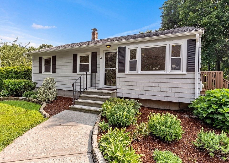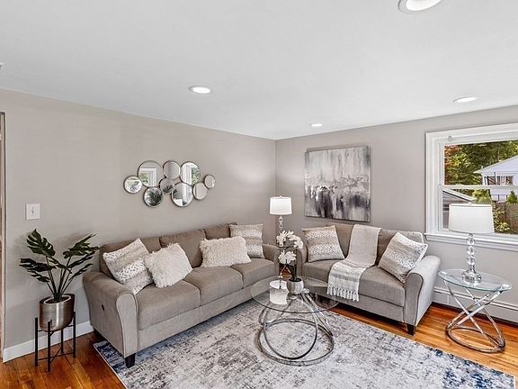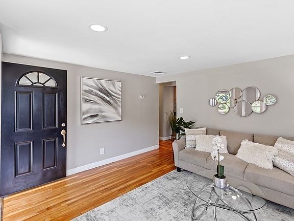 Showings start at Open House 12:00 Sunday. Updated 3 bedroom ranch on quiet side street between Willet Pond and Norfolk Agricultural School. Hardwood floors, new bath, kitchen and many upgrades. Upon entering, you're greeted by a lovely living room with picture window that leads to a neat and tidy kitchen with beautiful Maple cabinets, black granite countertops and matching black appliances. The adjacent dining area has exterior access and large Harvey windows providing abundant natural light and backyard views. The updated bath has tile floors and upgraded vanity with a lovely granite top. Other highlights of this home include recessed lighting, central AC, new porch, newer oil tank, and bath renovation. Outdoors you'll find a wonderful, level backyard with a large brick patio, yard is private and full of perennials and a tool shed. Convenient location--only a few minutes drive to commuter rail, shopping, Routes 1, 1A & 95. Make this lovely home your own! Offers due by Tuesday at 3pm