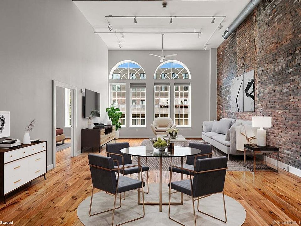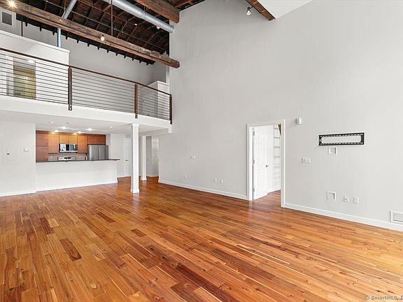 Urban oasis in the heart of Downtown New Haven! Welcome to The Lofts at 91 Church - where historic charm meets modern luxury. This stunning, one-of-a-kind loft condominium is part of a 2015 build-out within an early 1900's building, offering the perfect blend of classic architecture and contemporary design. This fabulous unit features soaring ceilings, expansive open-concept design, and refined finishes throughout. The oversized Great Room features 26' ceilings, palladian windows with electric shades, and original brick walls. The sleek open Kitchen features quartz countertops, brand new stainless steel appliances, and a stylish breakfast bar - perfect for entertaining or quiet mornings at home. The main-level Bedroom has a large closet plus a private Full Bathroom. Upstairs, an open loft area makes an ideal 2nd Bedroom, guest room, office, or bonus space; it offers more closet space and a 2nd Full Bathroom. Additional highlights include in-unit laundry, engineered hardwood floors, Thermopane windows, central air conditioning, elevator access, guest Half Bathroom, and a 210 sq ft private storage area in basement. Ideally located near the New Haven Green, Wooster Square, Yale University, and Yale New Haven Hospital, this exceptional condominium offers a peaceful retreat in the heart of the city!