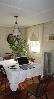 This is a gem... in village antique updated cozy cozy , 7 room colonial ,,wide pine floors , lots of charm and all.. come see the fantastic rear yard and friendly front old time porch just waiting for your furn and rockers for summer nights .. updates are: furnace steam oil, elec, circuit breaker panel, vinyl clad insulated windows, natural kit. cabinets. oil tank , great beamed family room has chimney brick wall set for wood burner .stove or pellet stove.. presently uses wood stove..