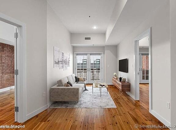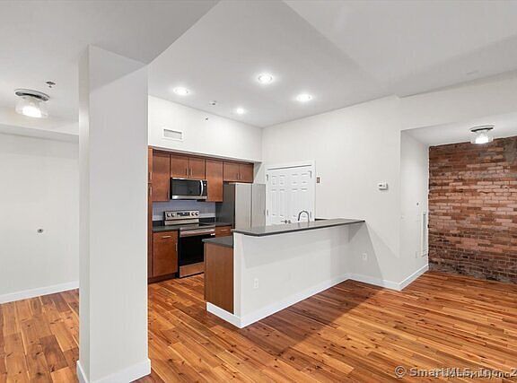Urban oasis in the heart of Downtown New Haven! Welcome to The Lofts at 91 Church - where historic charm meets modern luxury. This fabulous ranch-style condominium is part of a 2015 build-out within an early 1900's building, offering the perfect blend of classic architecture and contemporary design. This spectacular unit features expansive open-concept living and refined finishes throughout. The oversized Living and Dining area flows seamlessly into a sleek, modern Kitchen with quartz countertops, brand-new stainless steel appliances, and a stylish breakfast bar-perfect for entertaining or quiet mornings at home. Each of the two generously-sized Bedroom Suites includes its own private Full Bathroom and ample closet space. A huge Ipe deck offers terrific outdoor space from both the Great Room and the Primary Bedroom. Additional highlights include in-unit laundry, engineered hardwood floors, Thermopane windows, central air conditioning, elevator access, guest Half Bathroom, office nook, and a 162 sq ft private storage area in the basement. Ideally located near the New Haven Green, Wooster Square, Yale University, and Yale New Haven Hospital, this exceptional condominium offers a peaceful retreat in the heart of the city!