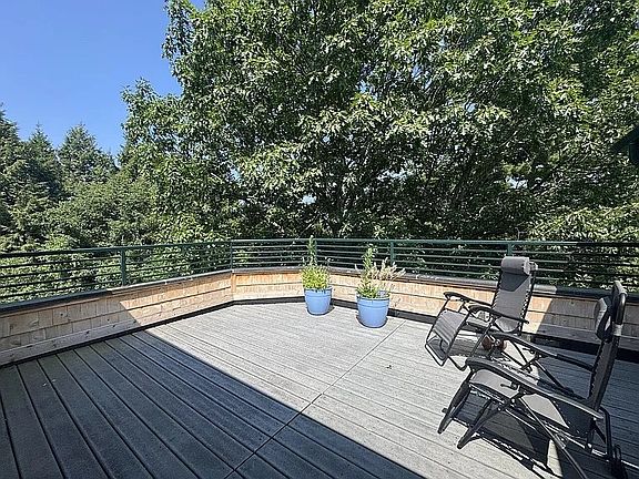- The primary suite includes a walk-in closet, deck access, and a luxurious en suite bath with soaking tub and separate shower