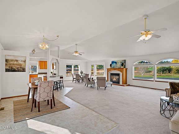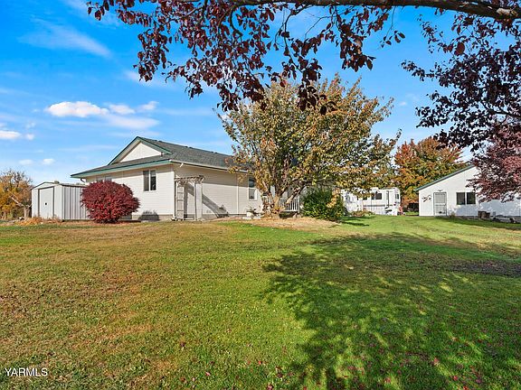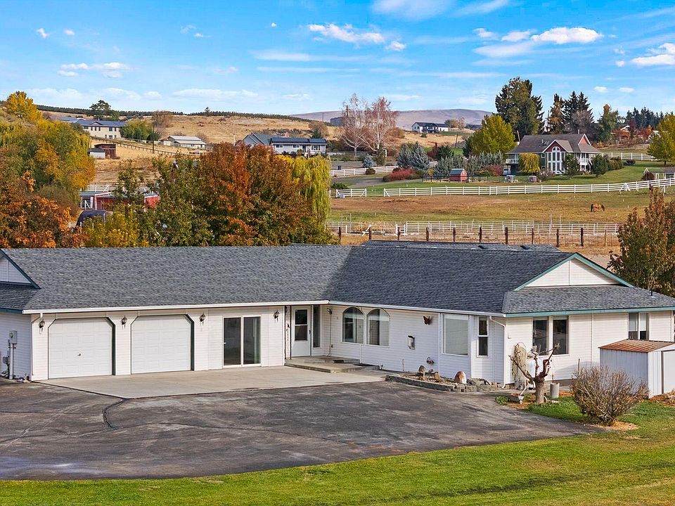 Located in a desirable Selah neighborhood where your neighbor is just the right amount of distance from your home and not too close. Sprawling rambler with large open concept living and dining space. It is the definition of open concept and plenty of room for everyone to hang out. Tall ceiling sand lots of windows make the home feel warm and inviting. Each of the bedrooms are large with ample closet space and storage too. Enjoy walking out to your private covered back patio off the kitchen area. Now the really good stuff, if you have toys and animals this is the spot. The large, paved area makes it easy to pull your vehicles and RV's in. If you have a lot of equipment or drivers there is plenty of space. Check out the detached shop too, so much room for all your hobbies and projects. There is currently a horse on property, the fencing and gates will be leaving and the sweet horse too, this is a great space for your four-legged friends. The entire perimeter is fenced. Spring fed irrigation water too.