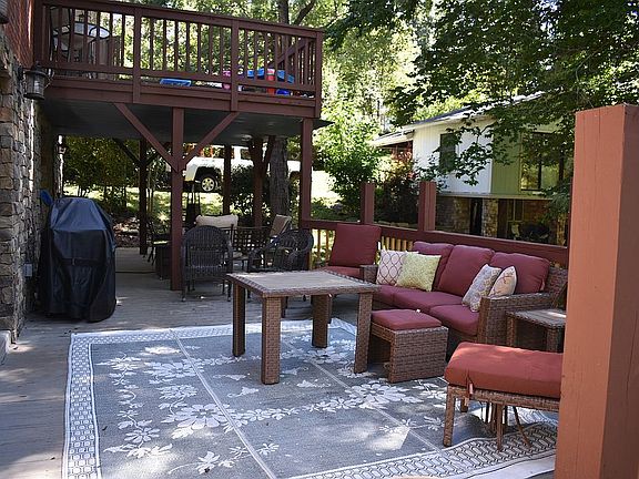 Quaint home located next to Historic Tryon Country Club, and only minutes from downtown Tryon! Home has been remodeled with high-level finishes throughout. Unique reclaimed heart pine beams and bar top pre-dating 1892 give this home its one-of-a-kind charm. Mahogany French doors open up to an expansive two-story deck provides the perfect setting for entertaining or enjoying the beautiful year-round views overlooking a two-acre field and creek, as well as a winter mountain view! Large detached two-story building provides endless opportunitiy from workshop to entertaining. All new plumbing, electrical and mechanical systems have been installed in the home. As well as, converting to natural gas for hot water heater, dryer, and heat. Great kitchen which centers around home's original brick wood-burning fireplace and access to upper deck. All the benefits of living in the mountains, but still just minutes from all that Tryon has to offer!