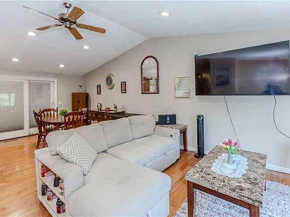 Brick front oversized raised ranch has garage, basement with in-law apartment option & central air conditioning and is located in a safe and quiet Western Cranston location. Open floor plan offers beautiful updated kitchen with granite countertops and island, flowing into the spacious living room & dining area, all topped off with vaulted ceilings that give an impressive open, airy feeling. Vacation at home with the large relaxing Florida room that opens to the private, fenced backyard with a large above ground pool, inviting poolside deck and covered patio area. The hillside location offers outstanding views from the living room's panoramic window. You will love the friendly neighborhood very close to shopping, restaurants, great schools, highway access and so much more. All the important stuff is new: Roof = 5 Year, Furnace & A/C Compressor = 1 Year.