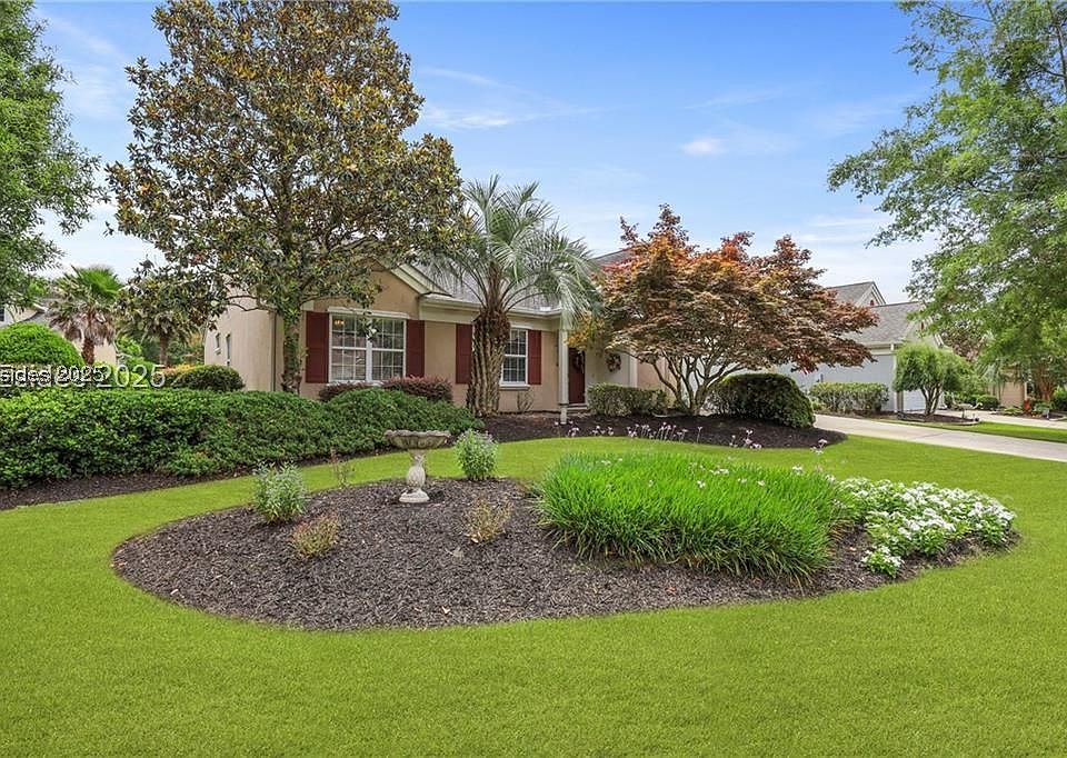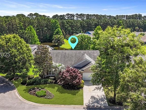 Welcome to 91 Doncaster Lane, ideally located in the vibrant, resort-style community of Sun City. This sought-after Wisteria model is beautifully situated on a desirable corner eyebrow lot, offering serene lagoon-to-wooded views from the spacious, hard-roof screened lanai—perfect for morning coffee or unwinding after a long day of activities. Step inside to a gracious foyer with rich wood flooring & elegant wainscoting. The open-concept great room features custom built-ins, blending style & function. Whether you're enjoying a round of golf or exploring scenic trails, you’ll love coming home to this peaceful retreat.