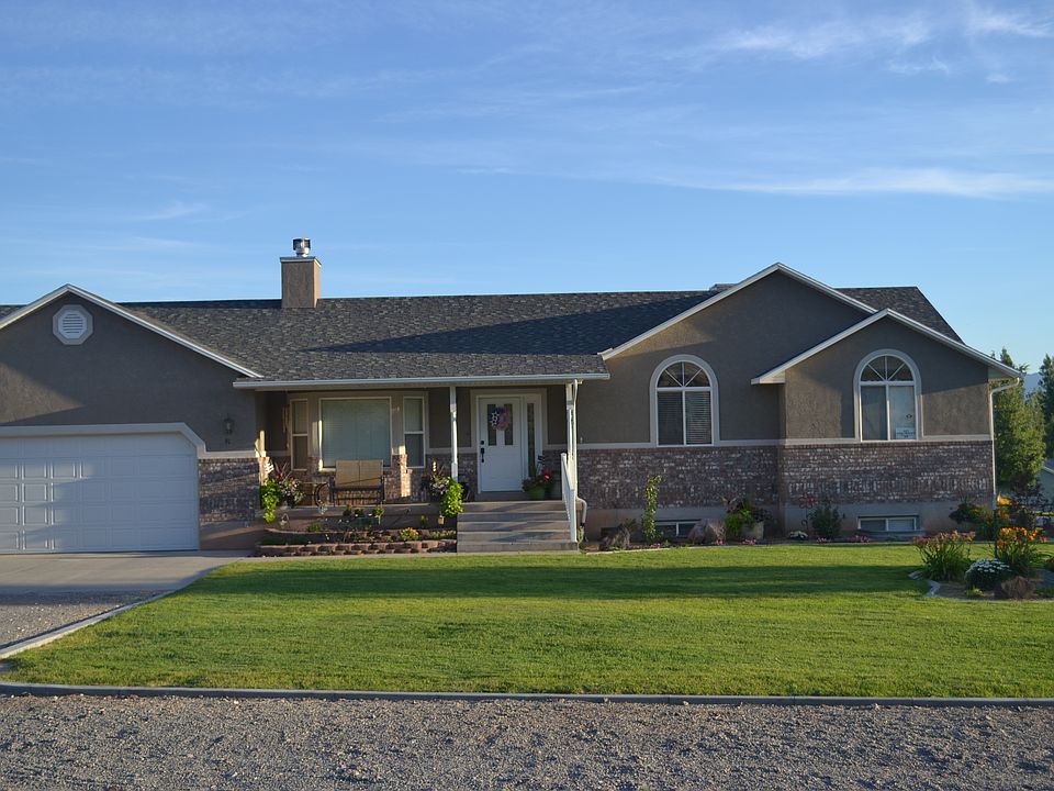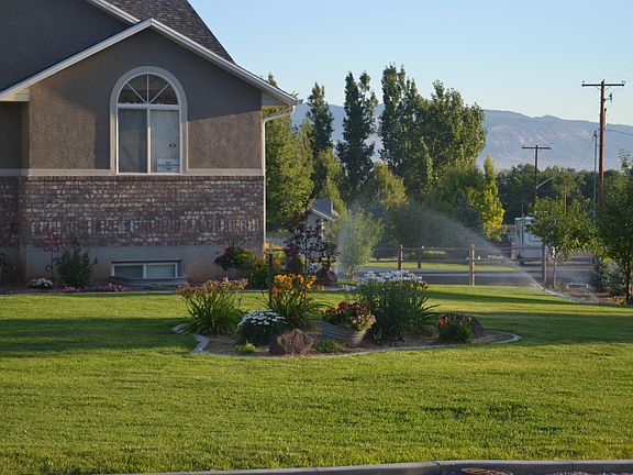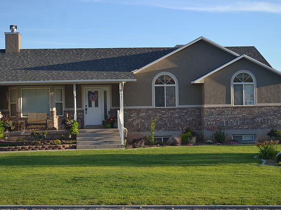 Beautiful home on a corner lot facing South/East with gorgeous mountain views. Home has vaulted ceilings in the living room, dining room and kitchen, large laundry room, covered front porch, 2 car garage, natural gas fireplace upstairs. Finished walkout basement with a wood burning fireplace. Landscaped yard with curbing and auto sprinkling system using pressurized irrigation water, large garden, fire pit, and large basketball court.