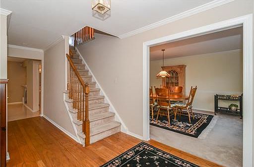 Just beautiful! Well maintained home in Timber Ponds. Brick front colonial with 4 bedrooms, 2.5 baths, 2 car garage, full basement and lovely exterior space. Featuring hardwood floors, great room with built-ins, fireplace and wet bar, new roof, paver walkways and patio, and master bedroom with sitting room. The granite kitchen with island and seating steps down to a spacious breakfast room with skylight but can easily be a sunroom or den. Upstairs has a front to back master bedroom that has a sitting room with built-ins, master bath with Jacuzzi. Three additional bedrooms and full bath complete the second level. The full basement is dry and clean with room for storage. Enjoy the yard and paver patio for entertaining.