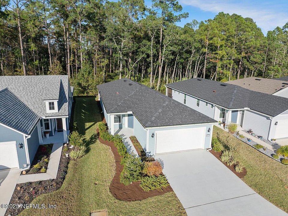 Welcome to luxurious resort-style living in Summer Bay at Grand Oaks, an exclusive 55+ gated community. This nearly new home is perfectly situated on a premium preserve lot, offering privacy, tranquility, and a beautiful natural backdrop. The seller is offering a 1% closing cost incentive with an acceptable offer. Thoughtfully designed with extensive upgrades, this residence blends modern elegance, smart home technology, and exceptional outdoor living. The inviting open floor plan features two bedrooms, two baths, and a versatile flex room ideal for a home office or creative space. The gourmet kitchen is a chef's dream with 42-inch soft-close cabinetry, rollout trash bins, quartz countertops, and stainless steel appliances. Adjacent to the kitchen, the spacious living and dining areas flow seamlessly to an extended screened lanai overlooking the peaceful preserve—perfect for relaxing or entertaining. The owner's suite offers a spa-inspired bath with a step-down frameless glass shower, bench seating, dual showerheads including a handheld option, upgraded cabinetry with soft-close drawers, and dual undermount sinks. The second bath features similar high-end finishes with a frameless glass shower. The flex room is designed for comfort and productivity with insulated interior walls, solid double doors, LED lighting, and media outlets. Additional highlights include a four-foot extended two car garage with fluorescent lighting and keyless entry, a smart home security system, a water softener system, whole house gutters, in-wall TV chase tubing in the living room and primary suite, a built-in pest control system, and full irrigation with a Wi-Fi-enabled controller, Irrigation water is drawn from the lake so unmetered and no cost. The laundry room comes complete with a washer and dryer, along with an optional gas hookup for the dryer. Residents of Summer Bay enjoy world-class amenities designed for active adults, including a clubhouse with entertainment and fitness facilities, a resort-style heated pool and spa, pickleball and bocce courts, a firepit, dog park, walking trails, and community garden plots available for leaseperfect for growing your own vegetables and flowers. Residents also have access to the master community amenities, which include a clubhouse, fitness facilities, resort style pool, pickle ball and bocce ball courts, large dog park, activities lawn, walking trails, fire pit, and much more! Current taxes are not yet homesteaded. This home is conveniently located just minutes from historic downtown St. Augustine, the pristine beaches, I-95, shopping, and top-rated medical facilities.