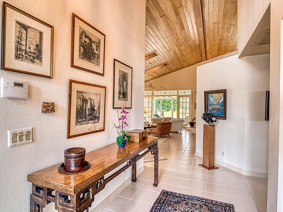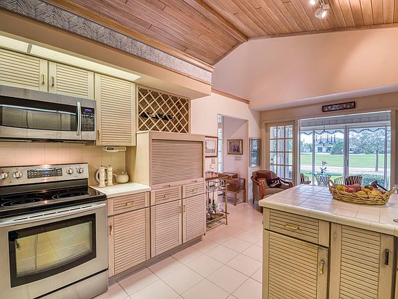 This gorgeous single-story home nestled within the coveted community of Tequesta Country Club has been meticulously cared for by original owners. Located on a premium lot over 1/4 acre overlooking the picturesque 13th tee, this charming home combines mid-century modern elements with a comfortable floor plan. Soaring cathedral ceilings with gorgeous tongue and groove planks welcome you into the living area. Gather around the stunning coral stone fireplace with friends & family. Skylights allow ample natural light to pour into this spacious area. Entertain effortlessly in the inviting dining room adorned with a custom-designed tray ceiling, plantation shutters, and large windows with views of the courtyard garden. The kitchen combines design and functionality, boasting stylish fluted cabinetry and hardware, a roll-top bar storage area with wine storage, and a breakfast bar for casual dining. Retreat to the expansive primary bedroom featuring vaulted ceilings, picture frame wall moulding, and a special loft area accessed by a custom-built spiral staircase. The flexible loft can be enjoyed as an office, reading nook, or exercise room. Two walk-in closets provide abundant storage while the ensuite primary bath offers dual vanities, fluted wood cabinetry, a whirlpool soaking tub, a walk-in shower with a frameless glass enclosure, and plantation shutters. The 3rd bedroom is currently being used as a den but the media built-in can be converted back to a closet. The Florida room features impact glass sliding doors and is the perfect spot to sip your morning coffee and enjoy the glorious sunsets and golf course views. This large yard has been meticulously landscaped with attractive plants & trees as well as privacy hedges. HOA is optional in Tequesta Country Club. Conveniently located within close proximity to beaches, the intracoastal, restaurants, entertainment, shopping, top-rated schools, parks & nature preserves. Live your best life here!