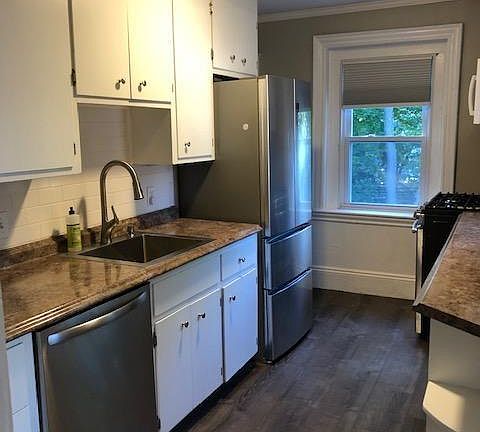 Beautiful 2 bed/1 bath apartment recently renovated in highly sought after Newton Highlands. Spacious rooms, lots of natural sunlight and windows, hardwood floors, and gorgeous Granite Counter tops in great Kitchen. Rent includes 2 parking spaces and just renovated 3 seasons deck and washer/dryer in basement. Location is ideal for commuters as close by to MBTA-D line.