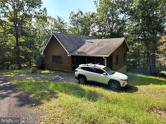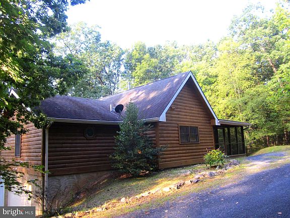 This is a solid log home, constructed with flat logs on the outside by the best Log Home Builder in Basye and his wife as their primary home. Garage has also been insulated. Home has beautiful features from hickory cabinets to high vaulted ceilings to Winter views of the ski slopes at Bryce Mountain Ski Lodge and Resort. New GE microwave, front loading washer and dryer machines, new fully installed ADT home security system, central vacuum, custom fitted wooden window blinds throughout the upper level, cedar walk in closet in the primary bedroom with built ins, double sliding cedar closet in bedroom 2 with built ins and a single sliding cedar closet with built ins in bedroom 3. Two hall closets with shelving. Marble vanity tops in upper-level bathrooms, linen closet with shelving in primary bathroom. Interior walls are sheetrock with log exterior. Garage has built in shelving for storage. Stone fireplace is a custom featured item with see through glass from the kitchen into the primary living room with gas lights for added safety if power was to go off. Screened porch attached to the kitchen entry with newly replaced screen. The lower level has a large getaway room, a forth bedroom, a full bath and another large room for an office. Beautiful nature views with occasional wildlife scenery. A 5-minute drive to the Bryce Mountain Ski Lodge and Resort with activities including the 18- hole championship golf course, Zipline Adventure, Mountain Bike Park, summer tubing, and Lake Laura, ice skating rink, access to local Caverns and antique shopping will keep you busy in the spring, summer, and fall. And there are many more activities to take advantage of. Furnishings to convey- sofa, love seat, 3 lamps, Curio Cabinet, 3 glass end tables, TV stand with TV in Primary Living Room, Wall hung TV in primary bedroom, wall pictures throughout home, kitchen decor on top of cabinets, and all wall hangings in kitchen, all bathrooms include shower curtains with decor, lower-level contains love seat with ottoman.