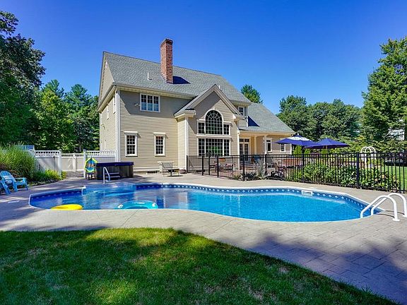 Unbelievable outdoor and indoor living is this warm and welcoming Colonial with gracious front porch and an oasis in backyard including outdoor kitchen, stone patio, and in-ground pool enclave with hot tub. Attention to detail with crown and dental moldings, two story window overlooking pool, 2 fireplaces .one dominating open floor plan in great room, walk-in pantry plus laundry room are accessed from large kitchen with Cherry Cabinet kitchen with center island and dining area, leading to elegant living room and dining room with cove lighting, convenient first floor guest suite and additional 1/2 bath while the winding staircase leads to the impressive master suite with fireplace, luxurious bath and walk-in closet, 2 additional spacious bedrooms sharing a compartmentalized bath, and large versatile bonus room/home office with back staircase to kitchen. Family fun is highlighted in the game room and large media room in lower level. Great neighborhood location with easy walk to Nashoba.