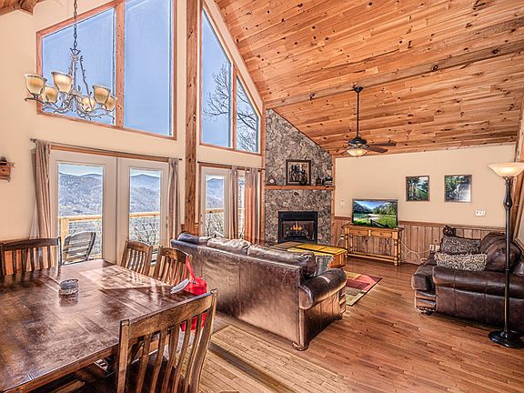 Charming Mountain Cabin with Spectacular Views Enjoy breathtaking long-range mountain views from this cozy 3-bedroom, 3-bath cabin nestled on a private wooded lot. Featuring vaulted tongue and groove ceilings, a spacious wraparound deck, and a private hot tub, this home offers the perfect blend of rustic charm and modern comfort. Ideal as a personal retreat or income-producing vacation rental. Conveniently located near hiking, dining, and all the best of mountain living that Bryson City has to offer!