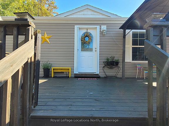 Charming Year Round Beach Bungalow in a fantastic Wasaga Location. Tucked away on a peaceful dead end street, just steps to the vibrant heart of Wasaga Beach, this charming and beautifully maintained home offers the perfect blend of comfort and convenience. Nestled next to an array of shops, restaurants and everyday amenities, you'll enjoy both privacy and walkable access to everything you need. Inside the thoughtfully designed layout features two spacious bedrooms positioned at opposite ends for added privacy, complemented by tasteful, move-in ready decor. Outside, a generous 32' x 12' sundeck invites you to relax or entertain, while the intimate backyard offers the perfect space for gardening, gatherings, or evenings by the fire. A tidy well-kept storage shed adds extra functionality, and the warm, welcoming community of neighbours makes it truly feel like home. Very close to golf, the library, marina, skiing, walking trails or beach. This is more than just a place to live - it's a lifestyle in the heart of Wasaga Beach. For a reasonable fee, you can buy a membership to enjoy the nearby amenities at Wasaga Country Life Resort, that includes an indoor pool, 4 outdoor pools, and a variety of other activities! New owner fees $775 (Rent), $44.65 (Structure tax), $28.26 (Lot tax) per mth for the lease on the land.