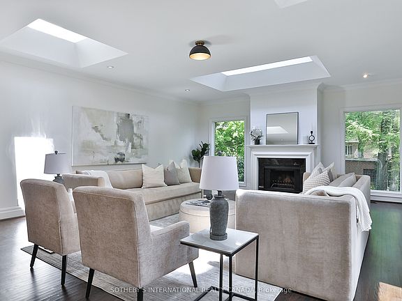 Exuding timeless elegance, this South Rosedale townhome was designed by renowned custom homebuilder Joe Brennan. Nestled on a winding, tree-lined section of Glen Road with a long setback from the road to ensure privacy. With over 3,300 sq ft across three levels, this home offers a seamless layout with the opportunity to customize as needed. The main floor of this home is truly a 'wow' - oversize in scale with high ceilings and well-suited for entertaining. Featuring magnificent natural light cascading from multiple skylights, rich dark hardwood flooring and a wood-burning fireplace flanked by large picture windows overlooking the garden. The formal dining room comfortably seats eight to ten people and features beautiful panelling and a convenient servery leading to the thoughtfully-designed kitchen. On the second floor, the massive primary bedroom offers a bright and airy ensuite with skylight, and the spacious second bedroom has its own ensuite and a walk-in closet. Ample space on the second floor offers the possibility to reconfigure for three bedrooms. The above-grade ground level offers a family room / office with a gas fireplace, large picture windows and a walk-out to the garden. Truly an enviable location, access to Craigleigh Gardens park and Milkmans Lane trail is just around the corner for a peaceful retreat under the tree canopy. Toronto's finest private and public schools including Branksome Hall and Rosedale Jr Public School are nearby. Situated just steps to the bus stop and walking distance to both Rosedale and Castle Frank subway stations ensures that you are well connected to the city. Rare three-car parking with an integrated garage providing direct access to the home and a long private interlocking brick drive. This is a wonderful opportunity for discerning buyers seeking the lifestyle and tranquility of this coveted neighbourhood.