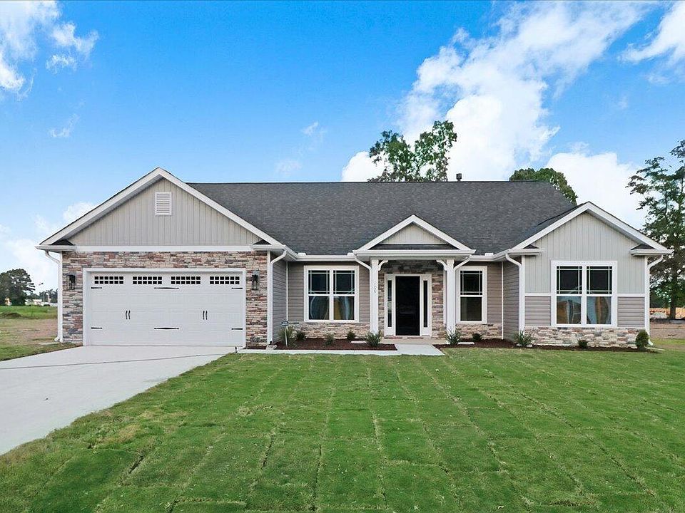 SPRING COMPLETION. 1K DEPOSIT. Introducing the spacious 2239 Plan by Adams Homes. This 1.5 Story Ranch offers all the benefits of a Ranch with some extra living and bedroom space. Step through the Front Door and your greeted by a wide Foyer with a Formal Dining Room decorated with a Tray Ceiling, Crown Molding and Shake Board on the walls. On the other side of the Foyer there is a Hallway that takes you into the Two Secondary Bedrooms, a Full Bath and Half Bath. Walk past the Hallway and you find yourself in the spacious Family Room with a Fireplace for everyone to gather around in the colder months. The Kitchen is located right off of the Family Room. You'll find included in the Kitchen a modern Gourmet setup with Soft Close Cabinets, Wall Oven, Microwave with a matching Dishwasher and Quartz Countertops. Off of the Kitchen you'll find the spacious Laundry Room with a Drop Zone and the large Walk-In Pantry. Off the Kitchen is the beautiful Primary Suite adorned with a Tray Ceiling and Crown Molding. Further in the room you'll find the open Primary Bathroom with a separate Soaking Tub and Walk-In Shower with Ceramic Tile Walls as well as the enormous Walk-In Closet. Back off of the Family Room at one end you'll find another Secondary Bedroom and at the other the Stairwell adorned with Iron Balusters on the First Floor Level. For further details about the home and to schedule an appointment contact the Listing Agent. ***Images are of a finished example. Actual Home will vary in colors and finishes***