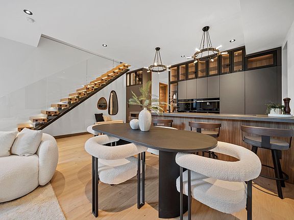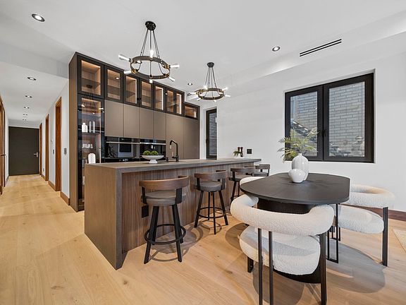creating a peaceful interior environment all year round. Our passion for exceptional materials continues into the bathrooms. Clad in large-format Neolith slabs and illuminated by Buster & Punch lighting, each bathroom features Ditra-Heat radiant floors—a German-engineered system known for reliability, seamless integration, and comfort. Individual thermostats allow for intuitive temperature control, and all bathrooms include smart toilets, offering elevated hygiene and comfort through cutting-edge technology. Throughout the residence, millwork reflects our uncompromising craftsmanship—from custom European interior doors imported from Spain to thoughtfully integrated architectural details. The solid 8-foot doors are custom-fabricated and clad in American walnut veneer, paired with concealed hinges and magnetic locks for a clean, uninterrupted profile. Even the base molding has been meticulously fabricated to match the walnut finish, reinforcing the residence’s seamless design language.