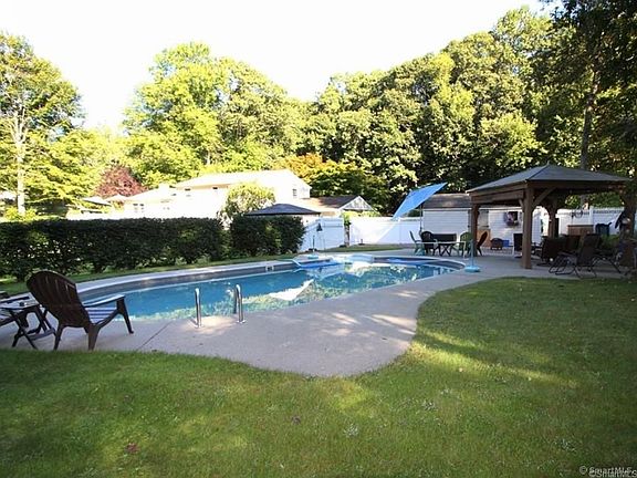 Beautiful 4-Bedroom Home on a Quiet Corner Lot with In-Ground Pool and Gazebo. 91 Harvester Rd truly checks all the boxes! Nestled on a peaceful road, this commuter's dream sits on a spacious corner lot and features an inviting in-ground pool complete with a charming gazebo perfect for summer entertaining. Step inside to a bright and airy open floor plan accented by gleaming hardwood floors and an abundance of natural light. The living room offers a cozy gas fireplace, ideal for relaxing on chilly winter evenings. The kitchen features Stainless Steel appliances, Granite countertops and ample storage and sliders that open to an expansive deck overlooking the backyard- a perfect space for gatherings and outdoor dining. Upstairs, you'll find four comfortable bedrooms and two full bathrooms, including a recently renovated hall bath you won't want to miss. The finished lower level provides an abundance of additional living space great for a rec room, home gym, or media room. This level also includes a convenient half bath and laundry area, along with direct access to the garage, backyard, and driveway. With its thoughtful layout, modern updates, and beautiful outdoor amenities, this home offers the perfect blend of comfort, style, and functionality. Professional photos will be added on 11/7. Upgrades include : 40 Gallon water heater 2018 Oil fired Boiler 2021 Cooktop replaced 2021 Added insulation to both attics and crawl space 2021 Hall Bath renovation 2021 Replaced pool pump motor 2025 Garage door motor replaced 2025 Living room, Primary bedroom and 4th bedroom painted 11/2025