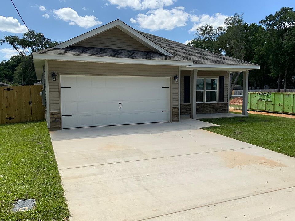 New Construction - features architecturally distinct gables with the classic front porch. The interior has beautiful finishing touches including LVP flooring throughout, nine foot ceilings with a tray in the master and living area. Open kitchen with custom white shaker style cabinets with easy close doors, granite counter-tops, stainless steel LG appliances including refrigerator. The dining room leads to the covered back porch grilling area. Both bathrooms have granite countertops and master has large walk-in closet. This is a Good Sense energy efficient home with Low E windows and Rheem HVAC. Home includes privacy fence with gates on both sides. Well water irrigation system with Rain Bird timer.